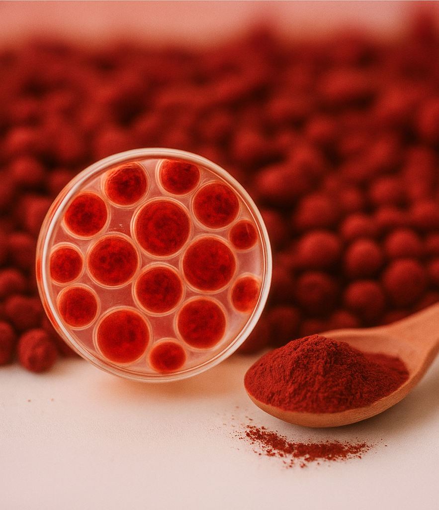 Astaxanthin as a antioxidant is 550 times stronger than Vitamin-E and 6000 times stronger than Vitamin-C. Astaxanthin is commonly found in salmon, shrimp, and krill, contributing to their distinctive pink or red colour.